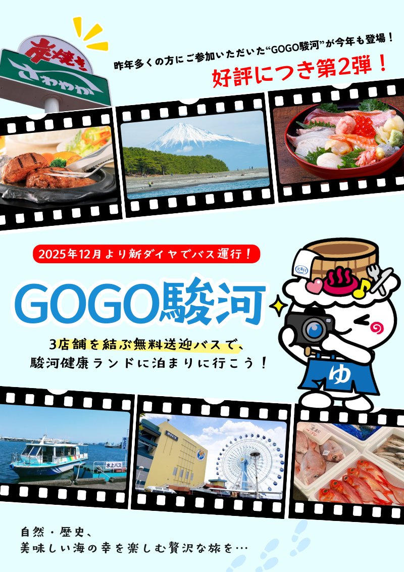 【GoGo駿河】無料送迎バスで駿河健康ランドに泊まろう!
