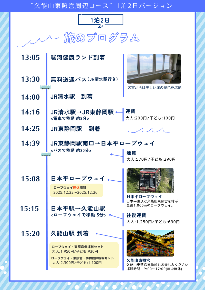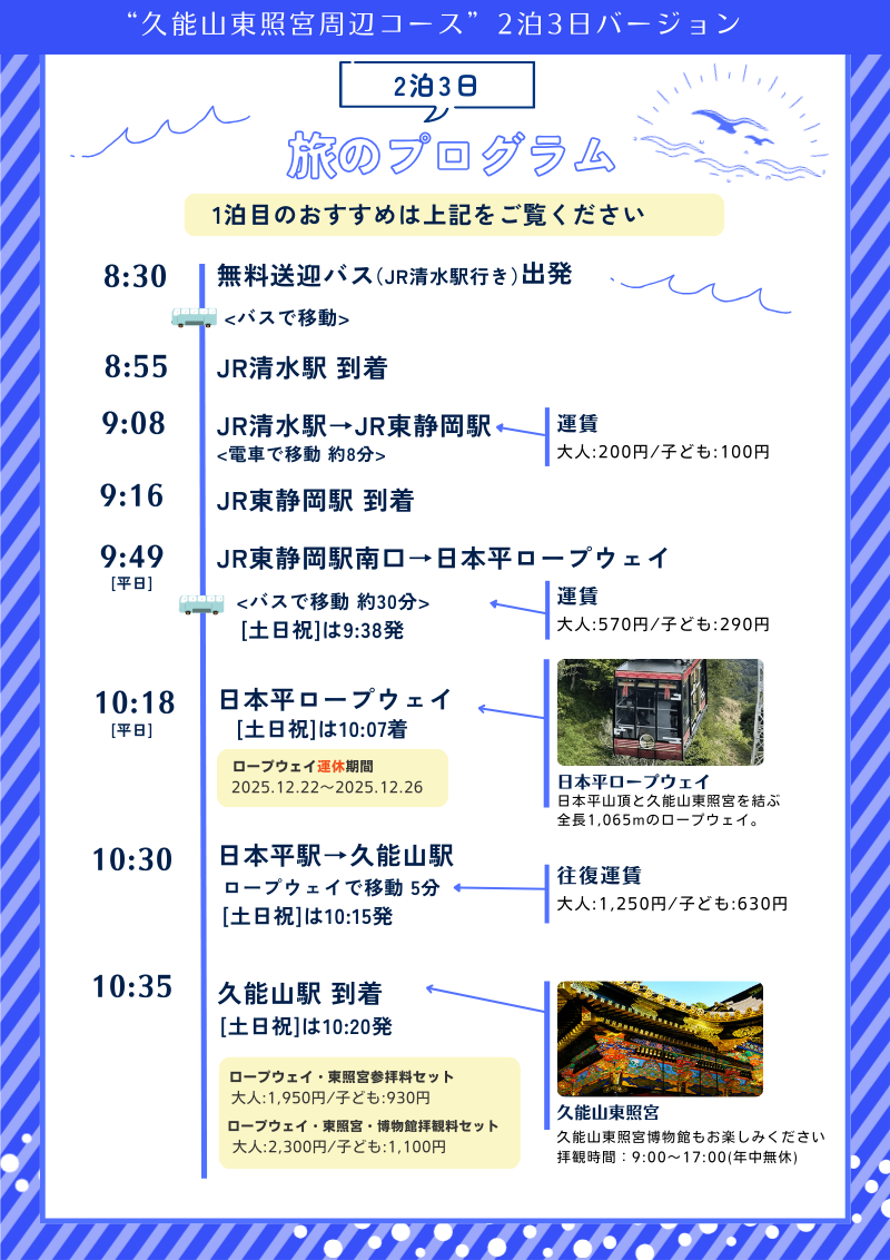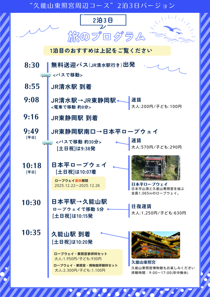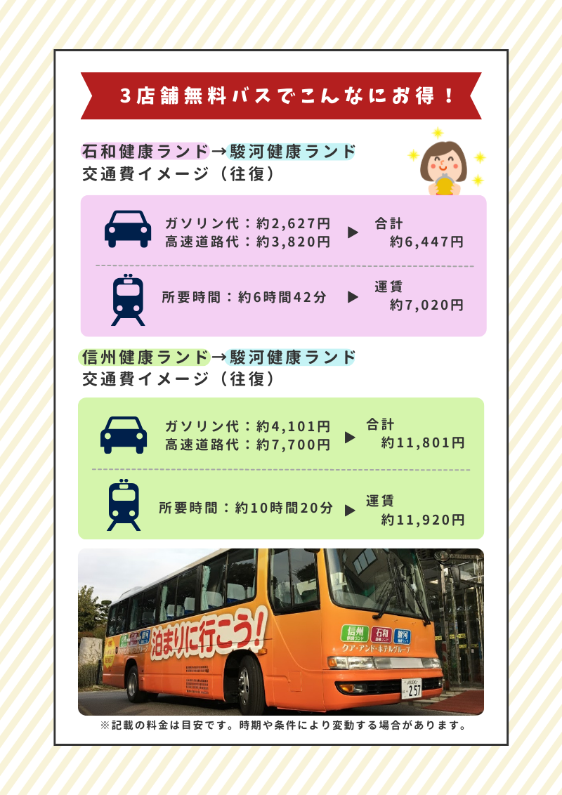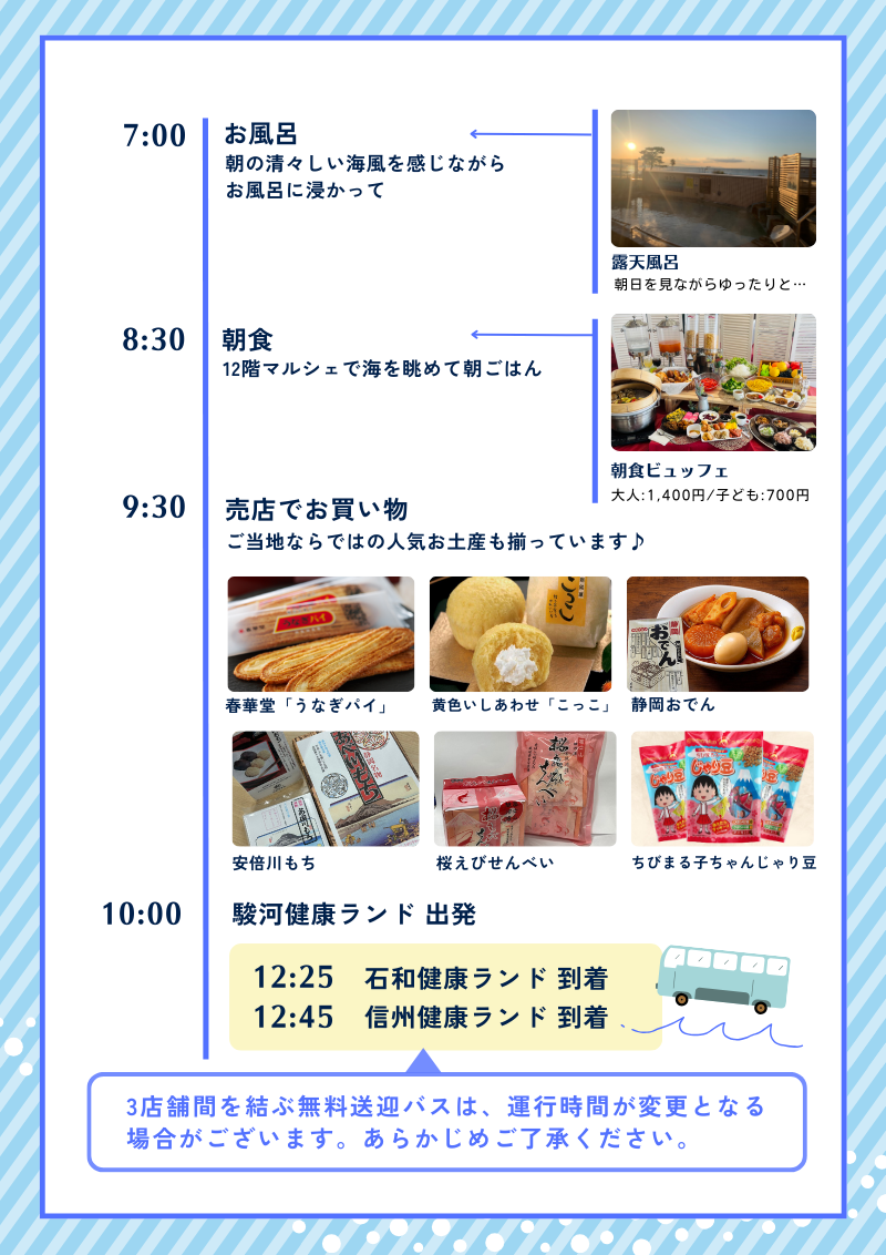 2025年12月1日(月)より「石和」「信州」「駿河」3店舗を結ぶ無料送迎バスの運行時間をリニューアル、余裕を持って静岡旅行がお楽しみいただけます。