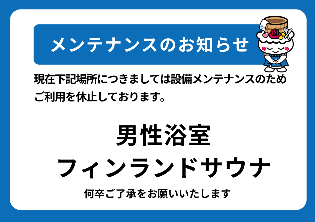 【メンテナンスのお知らせ】男性浴室 フィンランドサウナ